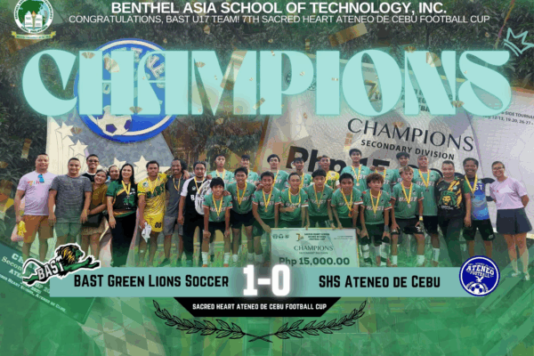 Champions on and off the field! 🏆⚽ Our BAST Green Lions Soccer Team became Champions in the Ateneo Football Cup last August 10, 2025, defeating Sacred Heart School – Ateneo de Cebu with a 1–0 score. 🏆💚 Benthel Asia School of Technology, Inc. proudly congratulates our dedicated Soccer Coaches for their outstanding guidance and leadership….